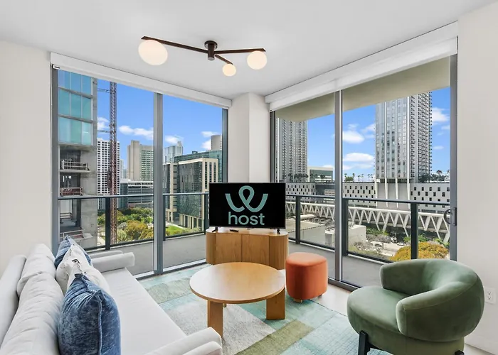 Spacious Condo To Steps From The Kaseya Center Miami villa entices guests to enjoy billiards and offers proximity to the richly ornamented Freedom Tower at Miami Dade College, located a mere 6 minutes' stroll away. Featuring a sunbathing terrace, the accommodation is situated only 0.8 km from the 28-story neoclassical Miami-Dade County Courthouse.